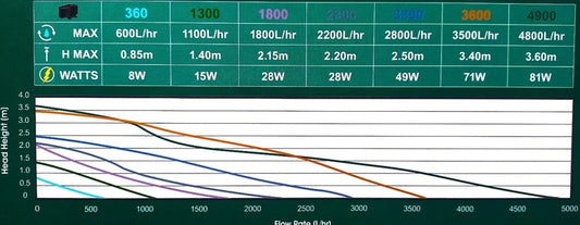 Pond Pumps with fountain heads—ideal for ponds, waterfalls, fountains, statues, ornaments, wall fountains & hydroponic systems.